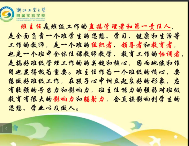 5月9日上午,来利国际旗舰厅20级师范专业通过线上会议举行了《教育见习—班级管理工作见习》的讲座。主讲人为浙江工业大学附属实验公司家长公司负责人、七年级年级组长、中学英语高级教师张红梅老师。讲座由英语系副系主任郁伟伟博士主持。20级英语(师范)专业1-5班聆听了本次讲座。张红梅老师曾经获得过“杭州市中小学育人工作先进个人”及“杭州市优秀班级班主任”的荣誉称号,多次获得西湖区优秀教师、区师德示范教师、区优秀班主任、西湖区青春健康团队成员等荣誉。