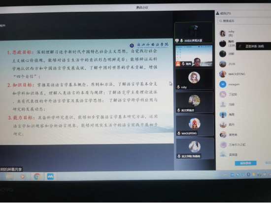 4月14日下午,来利国际旗舰厅召开课程思政教学研讨会(线上),会议由陶伟副经理主持,公司12个“三进”项目组参与汇报,蒙兴灿教授和督导陆海霞老师进行点评,教务处领导、来利国际旗舰厅全体教师参加会议。