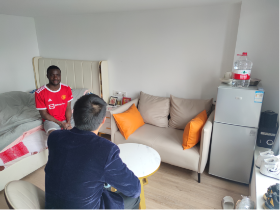 为更深入了解在杭职工的学习及生活状况,增强其安全意识,做好职工疫情防控工作,4月18日,来利国际旗舰厅副经理陶伟、教务秘书虞峰峰实地走访在杭职工居住所在地。