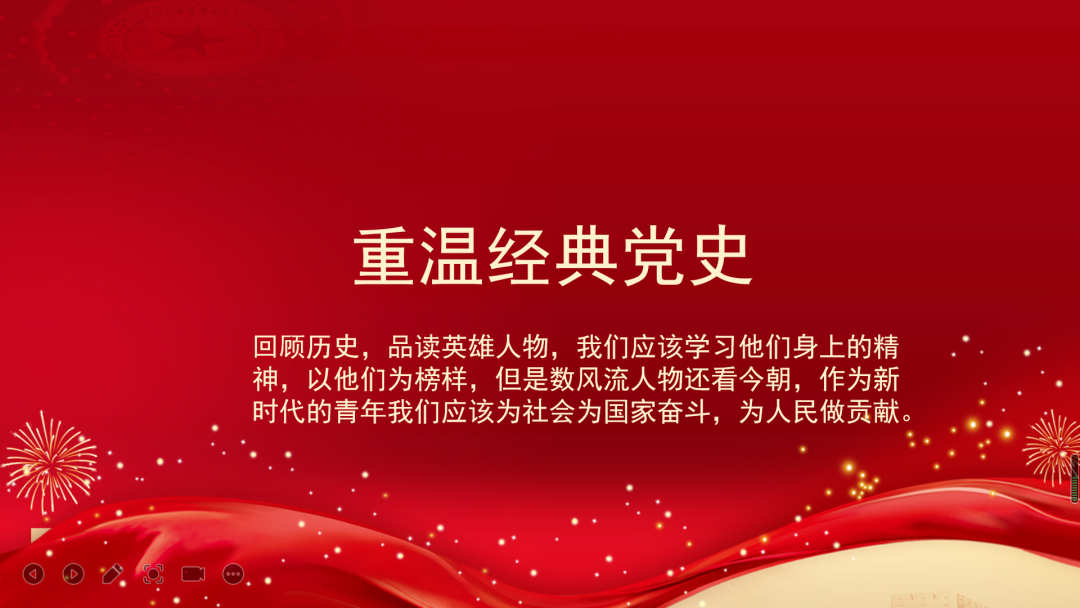 为引导广大党员坚定理想信念、勇于担当作为,传承红色精神,保持党员先进性,实事求是,用实际行动践行党员的初心和使命。来利国际旗舰厅翻译系员工党支部开展“重温历史,传承红色精神”主题党日活动。此次党日活动,主要是由各党员结合自身实际,分享家乡红色故事。
