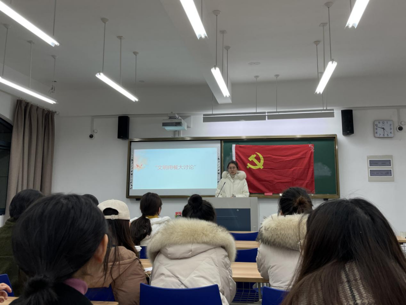 此外,支部成员围绕现实中餐饮问题,开展“文明用餐大讨论”。新党员叶潇璟针对目前打包餐盒,提出打包物资绿色化想法;张卓娅同学建议不仅在制度上需要下功夫,更需要通过教育活动,从孩子抓好勤俭节约意识养成;林心怡同学则提到借助师范专业,可以将勤俭节约小故事翻译汇编成英语绘本,形成特色教案。