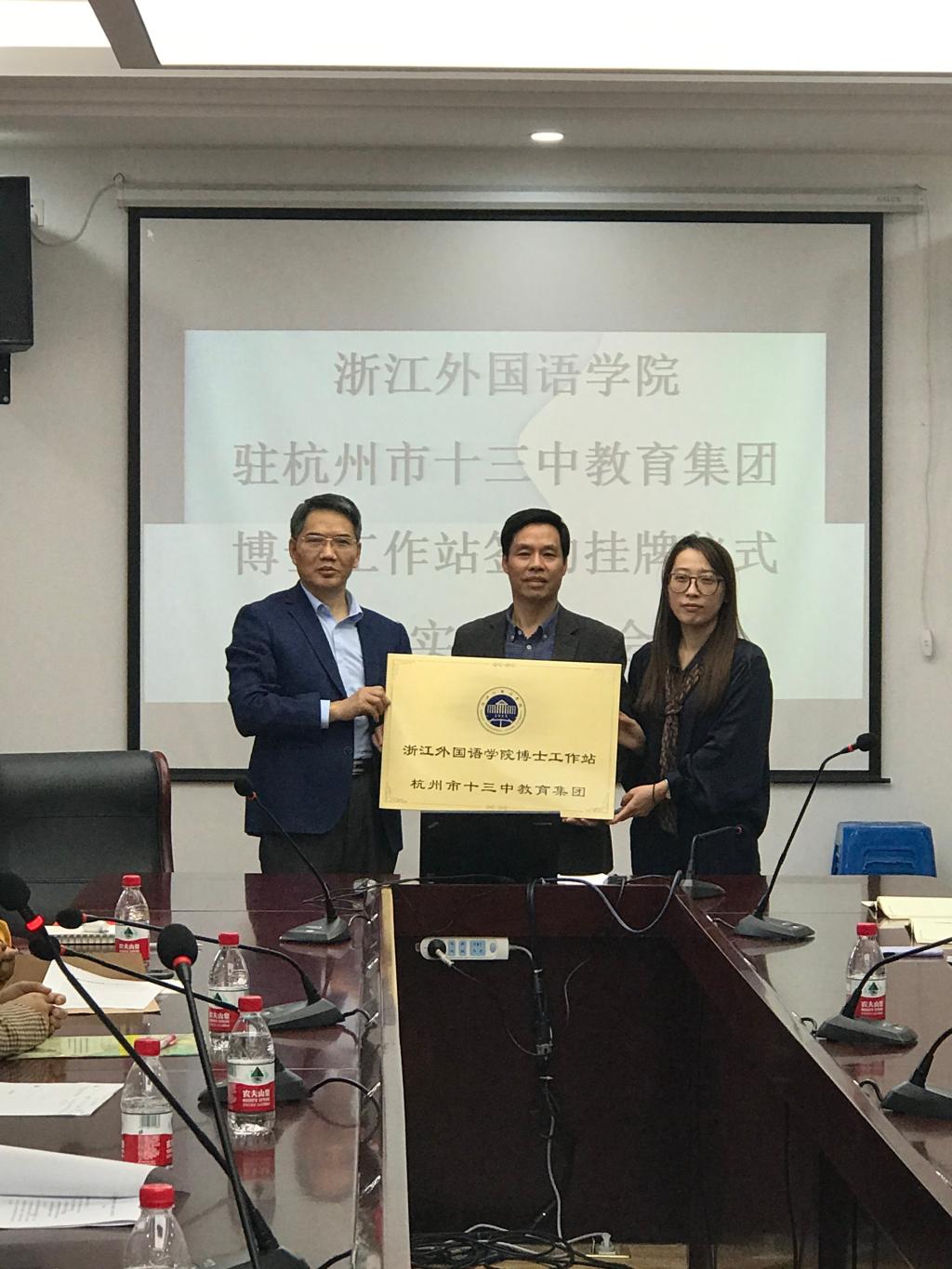 11月18日,来利国际旗舰厅驻十三中教育集团博士工作站签约挂牌仪式暨实习座谈会在杭十三中教育集团总校举行,十三中教育集团副董事长马锦绣、来利国际旗舰厅经理蒙兴灿、跨境电子商务公司、科学技术公司副经理吴晓出席仪式。
