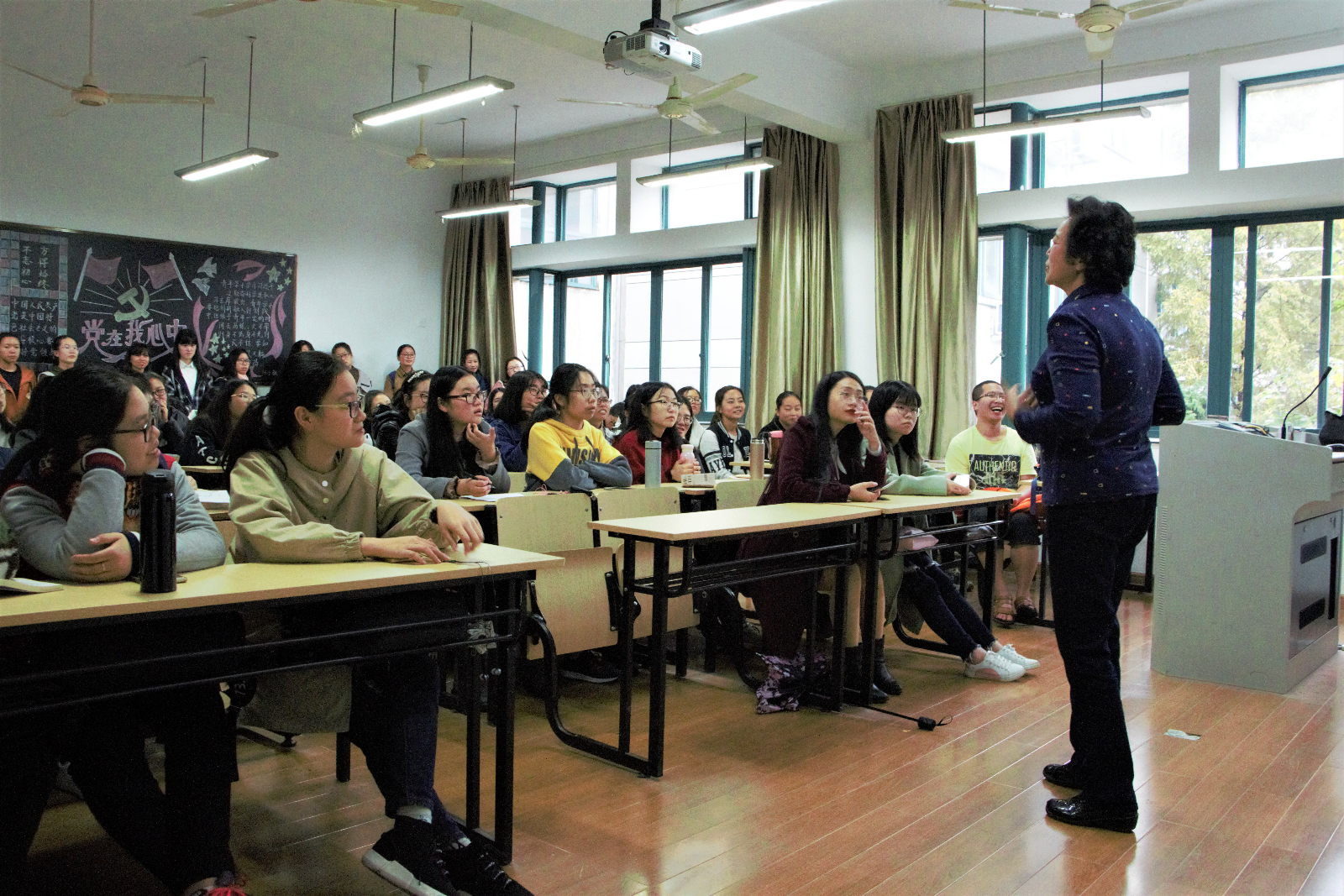 11月16日下午一点半,美籍华人、英语学习专家蒋希虹老师应邀来院,为来利国际旗舰厅员工做了一次英语学习分享会。