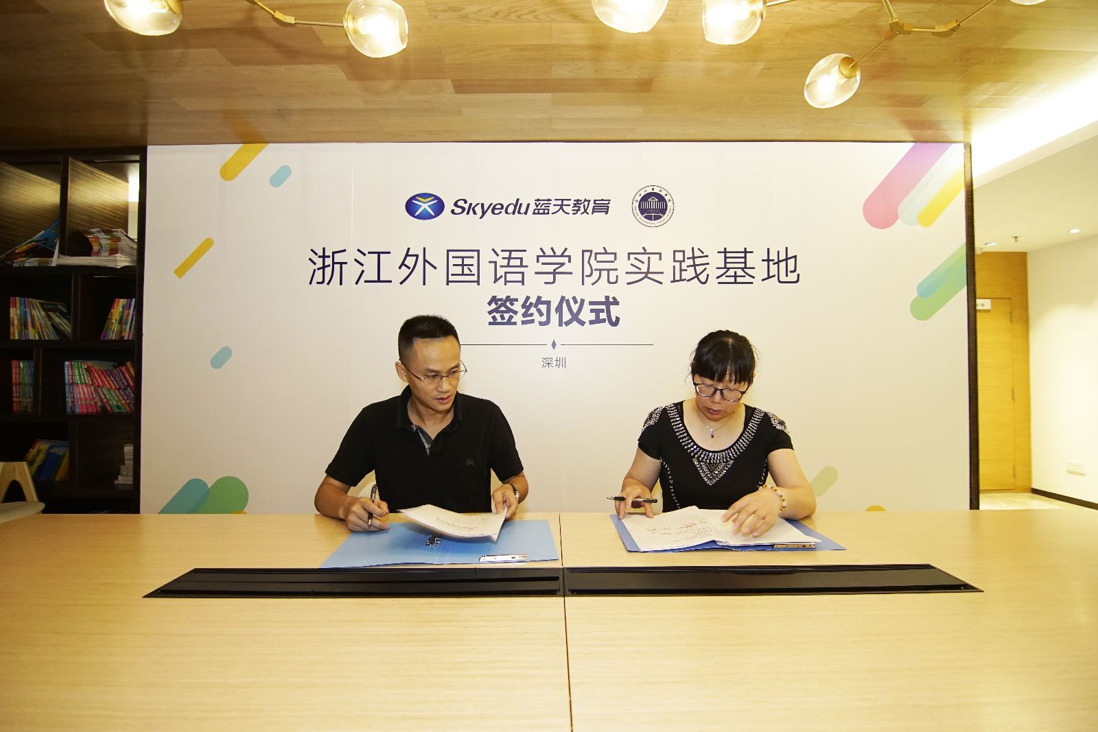 在考察深圳蓝天教育集团总部过程中,企业领导向公司一行介绍了企业发展与人才需求状况,并表示在与公司的合作中,实习生和毕业生的优秀表现得到了企业各个部门主管的认可,希望未来能够进一步扩大合作,为企业输送更多的优秀实习生和毕业生。随后,公司与蓝天教育集团举行了实践基地签约仪式与挂牌仪式,双方就合作的一些细节展开了进一步的沟通与协商。