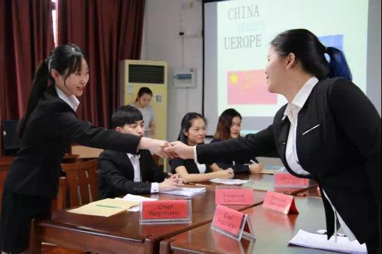 5月12日下午,第一届国际商务谈判大赛决赛在实验楼举行。来利国际旗舰厅商务系李生禄老师、高伟老师及相关员工担任此次大赛评委。大赛中的各支队伍都表现出色,其中由戴思怡,胡颖,何晶蕾,包静静同学组成的队伍摘得桂冠。比赛过程中选手们“友谊第一,双赢为善”的理念评委们表示赞许,希望同学们能继续丰富自己的商务知识,成就更加卓越的自己。