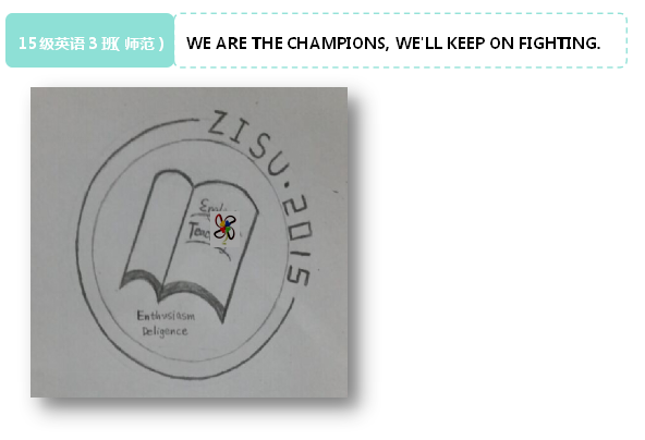 班徽介绍:2015夏,我们就这样不远万里因为缘分圈到了这个班级,在27人的大家庭中,有来自广西的伙伴,还有贵阳的直爽女生,还有来自河南的,来自温州,来自金华……这里的每个人都朝气蓬勃,富有激情,这是班徽采用红色底色的寓意。班徽的主体构成是一本书,左侧封面是一颗年轻的树木,希望班级里的每一个同学都能好好得在浙外校园里好好成长,他不是幼苗,也不是一颗大树,我们的老员工活还正在进行!右侧的封面指的是Business English的缩写,表明了我们的专业,其次和班级口号相对应(to be who you wanna be)。