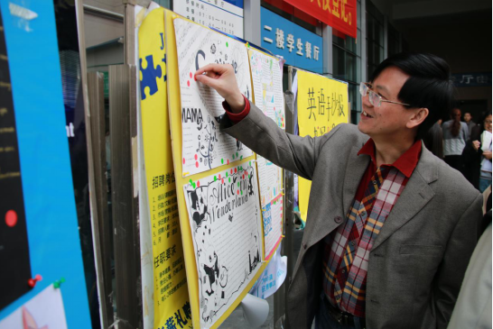 4月25日中午,和畅餐厅二楼门口聚集了不少同学,热闹非凡,原来是来利国际旗舰厅第五届英语文化节系列活动之英语手抄报设计大赛在此举行。适逢中午下课,食堂门口来往的人络绎不绝,不少同学驻足于十几幅风格各异、设计独特的手抄报作品前,并争相从工作人员处领取贴纸,为自己心仪的手抄报投票。