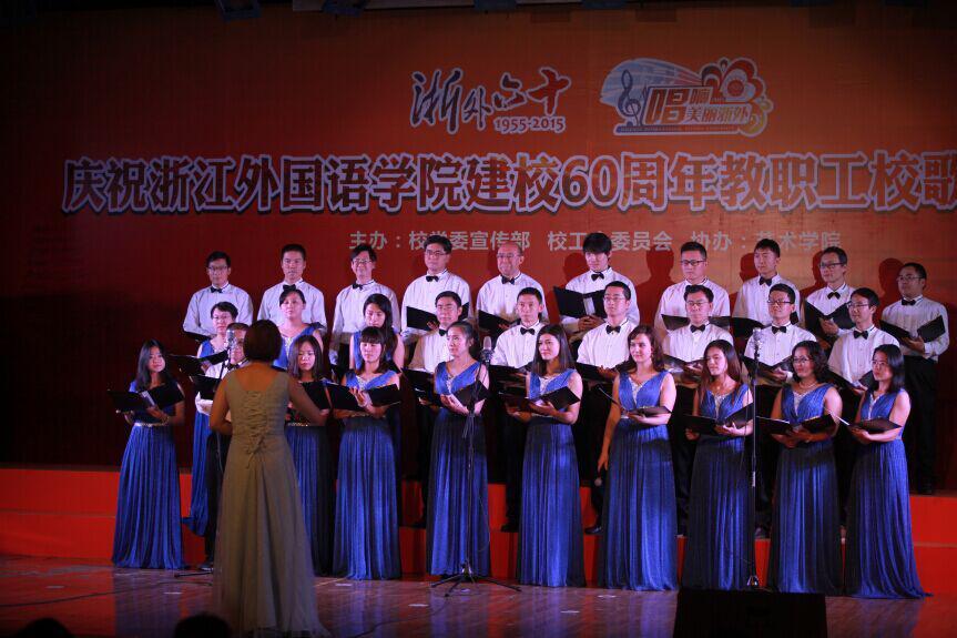 “钱塘清嘉,和山苍苍……”典雅、精致的校歌,回荡在文三校区小礼堂。公司代表队身着一袭华丽的服装,深情颂唱校歌祝福公司六十华诞。第二首参赛曲目《You Raise Me Up》更是将气氛推向高潮,饱含深情的演唱,感染了现场的每一位师生。