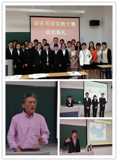 本次比赛通过全英文书面报告、项目概述书、全英讲解和多媒体辅助演示的形式,围绕国际商务风险管理、跨文化管理、财务管理、商务与管理沟通、国际营销展开,旨在培养参赛者的跨文化能力、实践能力、创新能力、语言沟通能力和自主学习能力。来自全校6个团队紧密结合当前国内外政治经济形势,就各自选题进行了项目背景陈述、SWOT分析、策略评估、市场调研和战略分析。其中,关于中非政治经济合作模式的分析(Analysis Report on the Problems and Solutions of Sino-African Economic Cooperation)荣获一等奖,关于农夫山泉事件的分析(The analysis of the Nongfu Spring crisis)和苹果公司公关危机处理的分析(Measures of Public Relations Crisis—Based on the Case Study of Apple Inc’s“Rear Cover Event”)获得二等奖。罗烨、叶佳丽等7名队员获得最佳个人奖。