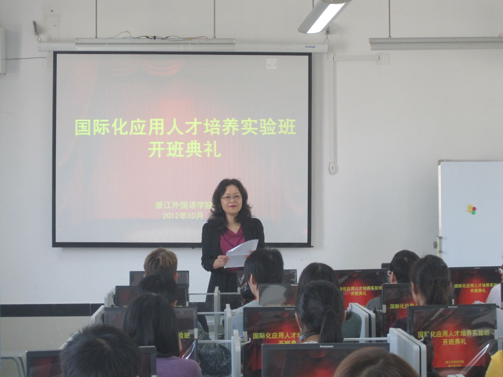 10月8日,国际化应用人才培养实验班开班典礼在小和山校区举行。副经理郑亚莉出席开班典礼。