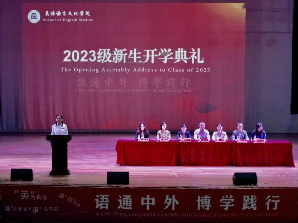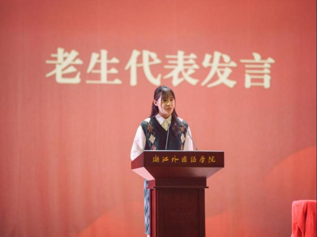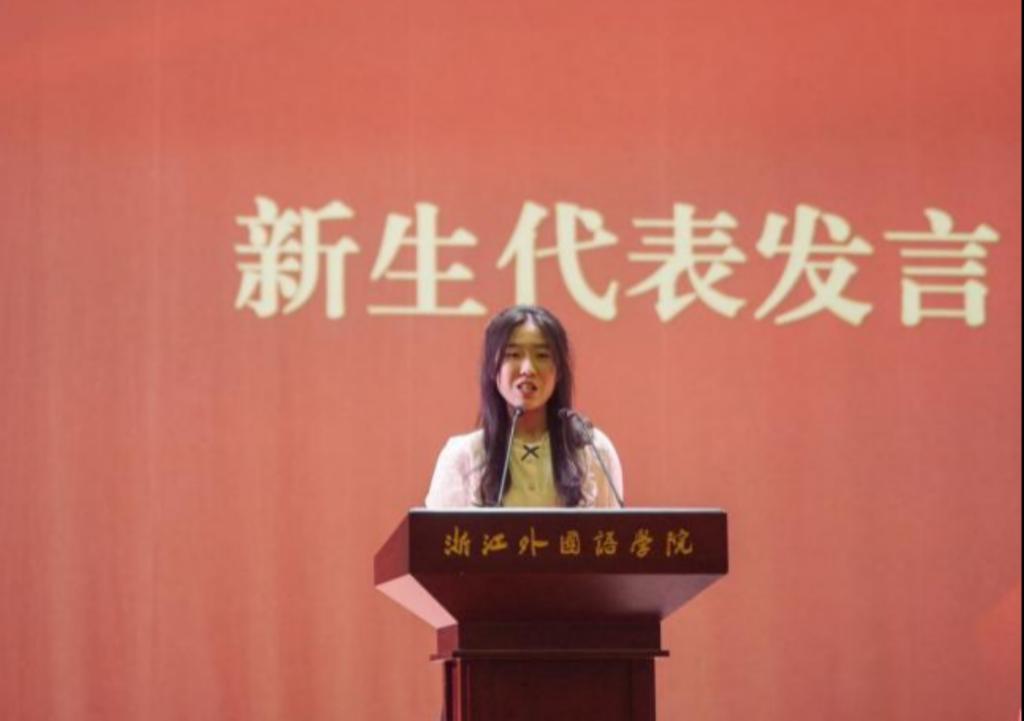 新生代表2023级英语(师范)1班的邵广妍对公司和师长们在迎新工作期间辛苦付出表示衷心感谢。她代表全体新生道出对未来的期许与展望:知行合一,履践致远,全面发展为具有家国情怀、国际视野的高素质应用型人才。
