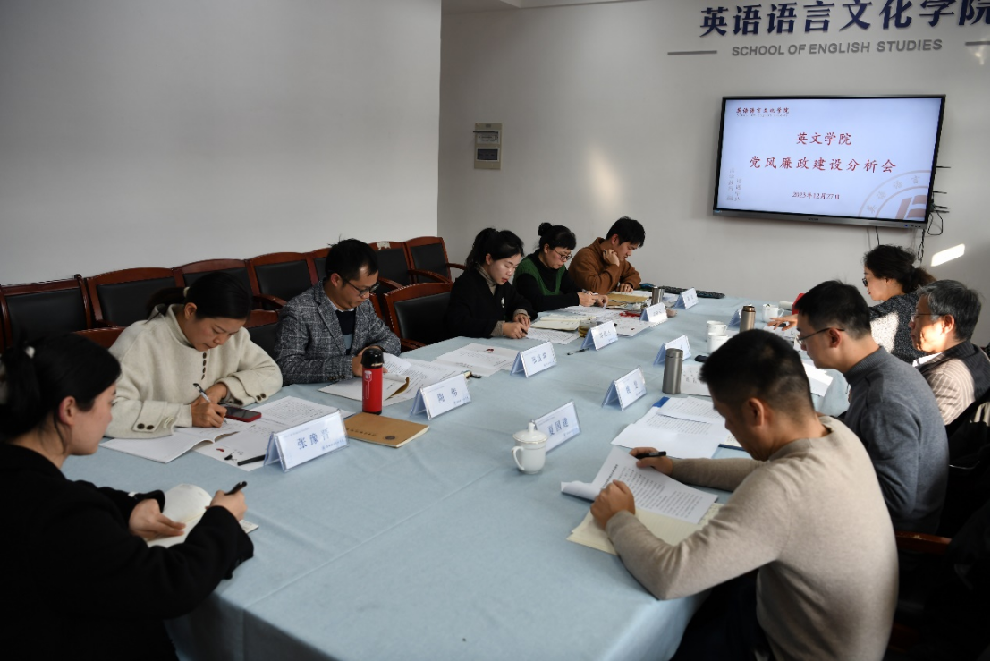 他强调,一要强化党建引领,加强统筹谋划。要明确使命愿景,聚焦思想引领,思考价值贡献,夯实基层组织建设。二要强化团队建设,明确价值使命。要进一步聚焦特色,明确建设目标,产出高质量成果,力争做到引领学界、引领行业。三要强化队伍建设,进行科学制度设计,充分激发教职工潜能,真正做到人岗相适,以事设岗,以岗择人,竞聘上岗。四是注重文化建设,强化精神文化凝练,推进制度文化,景观文化等,最终内化为有英文特色的师生行为方式。