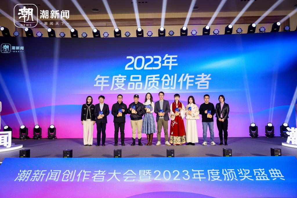 王冲(左二)参加潮新闻创作者大会暨2023年度颁奖盛典