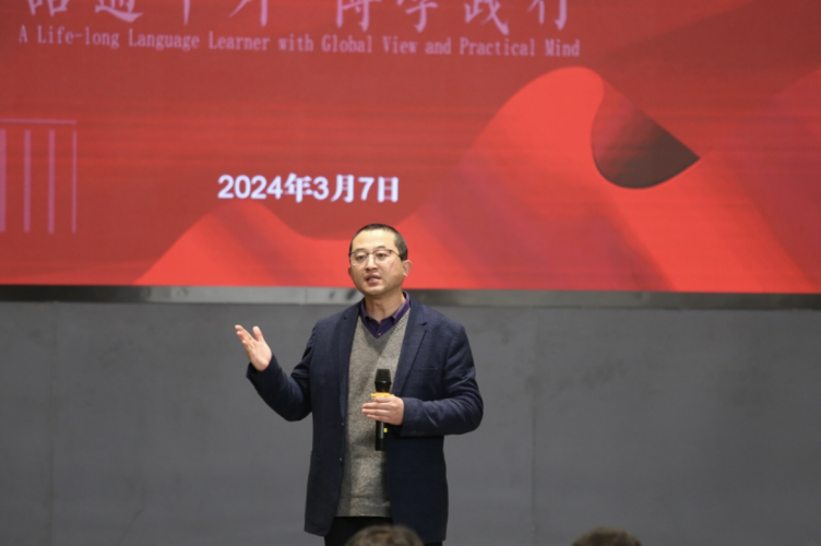 邢富坤强调了在大学期间坚守初心、瞄准定位、努力拼搏的重要性,肯定了与师长交流专业、学习的意义。他介绍了近期公司在引进名师、推动硕士点申报等方面取得的丰厚硕果,表示公司当前发展有实力、有底气,希望助力同学们进一步成长成才。邢富坤以寒假最引人瞩目的宗庆后和贾玲为例,鼓励同学们找准自己的定位,从优秀人物的经历中汲取奋发向上的力量,不以财权利作为衡量成功的唯一标准,要树立奉献社会的初心使命,坚持不懈地严格要求自己,将专业变成强项,最终收获累累硕果。