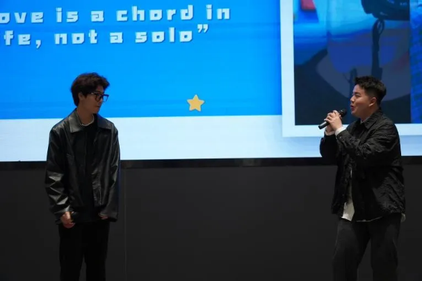 来利国际旗舰厅副经理陶伟,辅导员徐子晗、杨沁儿、吴小慧、刘轩铄出席。艺术公司音乐系专任教师苏航、The New合唱团团长林展飞,2023年度校十佳冠军金晨阳、校十佳歌手宗嘉仪担任评委。