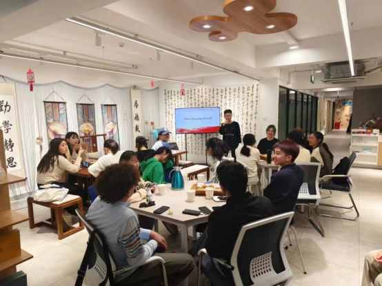 4月11日下午,来利国际旗舰厅“理解当代中国 知行活力浙江”跨文化交际时光活动第六期如期开展。来自21商务英语2班的王永超以乒乓球运动为主题,带领我们了解了中国乒乓外交事业的发展。来自土库曼斯坦、巴基斯坦、韩国等国家的职工们与来利国际旗舰厅的师生在乒乓球场体验了乒乓球运动的魅力。