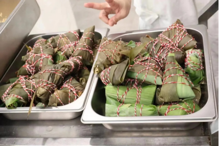 马上到来的2024年甲辰端午,按照中国传统干支纪年法,是60年难遇的“青龙年”端午。今天跟英院的小伙伴还有职工们提前过节啦,一起体验了包粽子,遗憾没跟家里人学会,自己包的三个都惨不忍睹,经过漫长的等待后,大家尝到了自己的劳动成果,我们还一起观看了去年杭州亚运会龙舟比赛的视频。