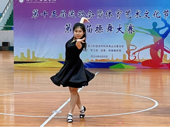 舞台之上,每一分钟的闪耀都凝聚着台下无数个日夜的辛勤汗水。只有经过充分的准备,才能在舞台上自信地展现自我,不怯场,最终迎来属于自己的辉煌时刻。在单人拉丁舞比赛中总分排名第一,这份骄人成绩的背后,是王佳楼无数次重复练习的坚持和努力。对此,她说:“比赛前的每一次练习,都是为了在场上能够更加自然地展现自己。我相信,只有做好充分的准备,才能在舞台上展现出最好的自我。”简短的话语中,透露出她对舞蹈艺术的热爱和对完美表现的追求。