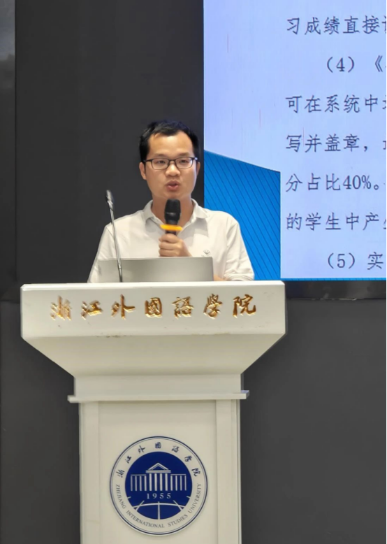 郭安琪采取视频的方式为同学们详细演示了员工邦系统的使用要求、操作方法和成绩评定方式。