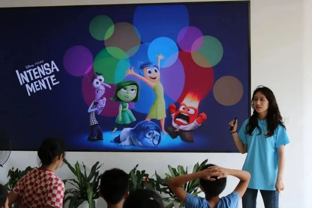 “寓教于乐”是活动最关键的主题。中华传统文化课上,传统节日、汉字奇趣轮番上阵,猜字谜、诵诗词,让孩子们在欢笑中邂逅千年文明的璀璨;英语配音游戏,让孩子们的语音语调在游戏中翩翩起舞,爱上英语的每一个音符;情绪管理常识课,以《头脑特工队》为导航,孩子们手绘心情图,学会与情绪共舞,管理自我的小宇宙;绘画折纸小游戏,不但启示孩子们要自己动手操作,而且激发他们自由发挥想象力和创造力,让他们学得乐在其中。来自2022级英语专业的何知诺说:“在英语配音课上,看到孩子们从羞涩到自信,用英语演绎出一个个生动的故事,那份成就感难以言表。教育不仅仅是传授知识,更是点燃梦想、激发潜能的火花。”