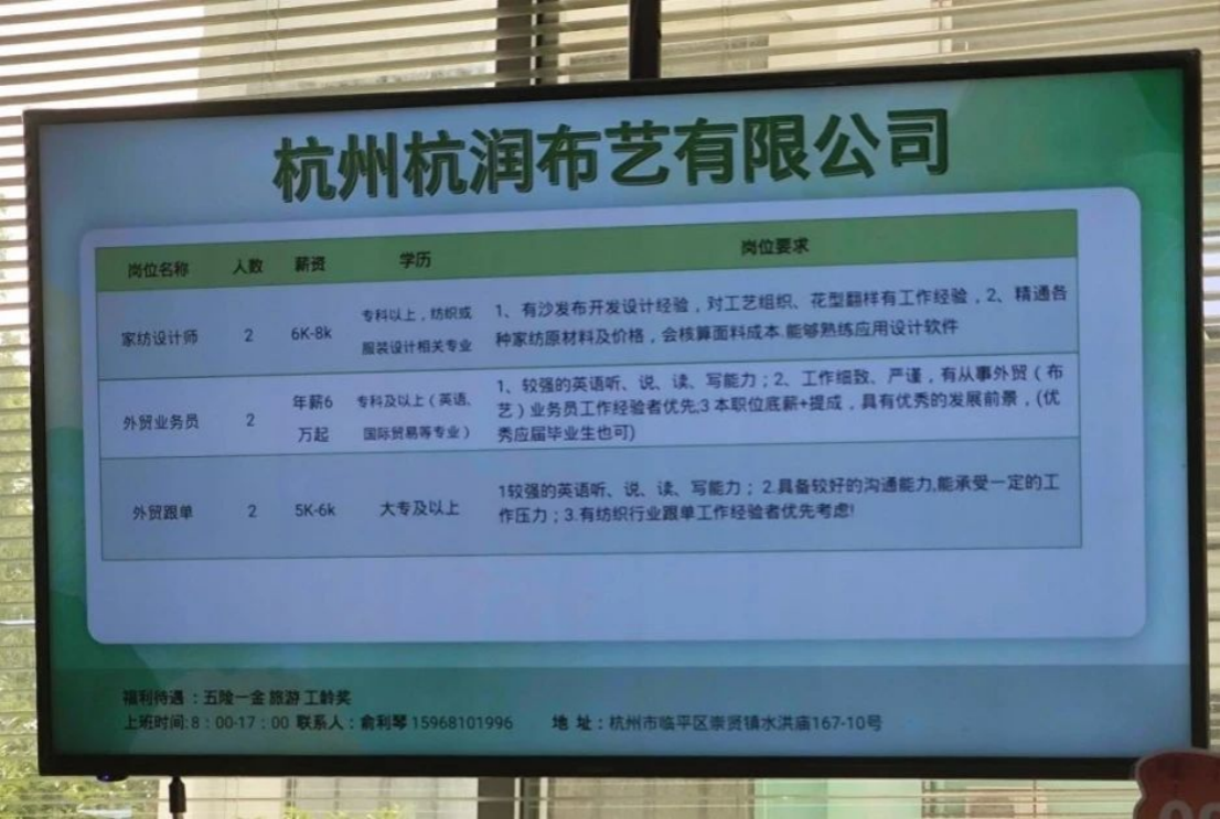 在“百日千万招聘专项行动”杭州市夏季人才云聘会的招聘现场,成员们还和一些应聘者进行了交流。在和几位来自国际经济与贸易(全英)专业的应聘者交流的过程中,成员们了解到在当前的求职市场中,特别是在对外贸易等领域,“能进行熟练的外语对话”成为应聘者需要的一块“敲门砖”。
