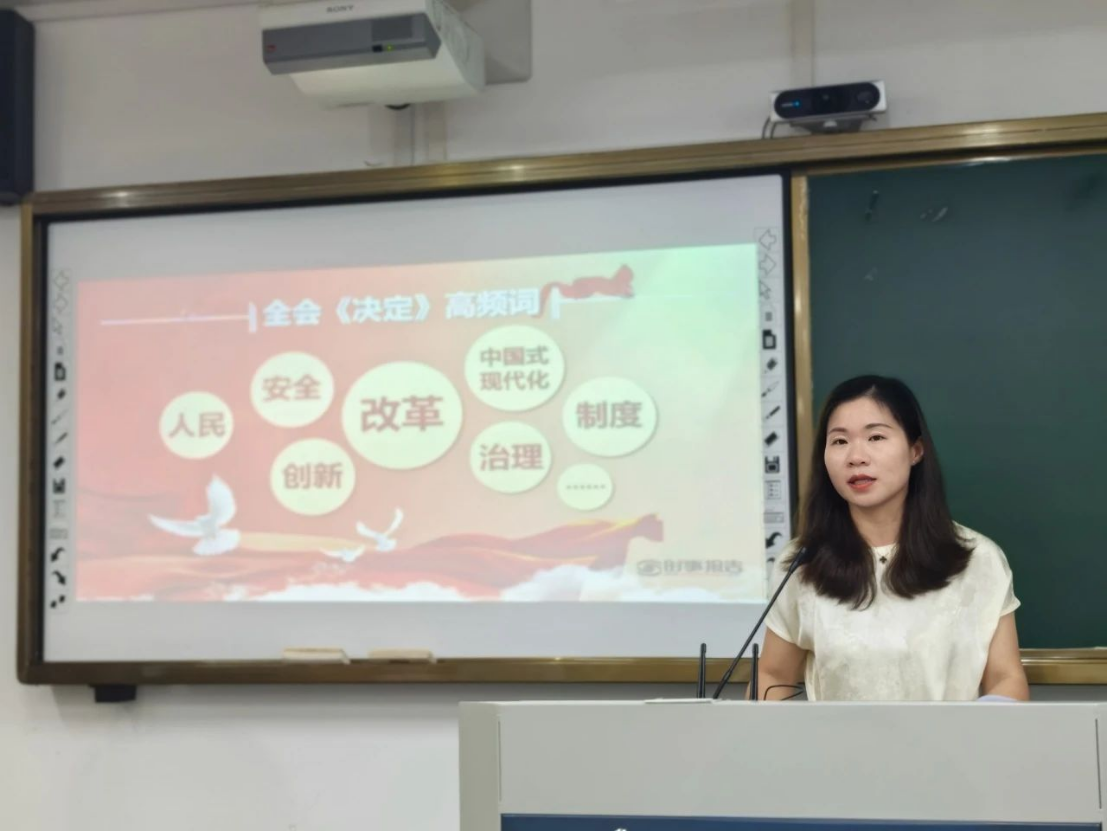 会上,田俊杰主要从“把握历史主动 改革波澜壮阔”、“锚定关键领域 擎画改革蓝图”、“遵循改革规律 保持战略定力”三个方面深入剖析了党的二十届三中全会的重大意义、主要内容和精神实质。她结合当前国内形势,阐述了会议对于推动全面深化改革、促进经济社会可持续健康发展的重要作用,就如何将会议精神融入到公司教学科研社会服务工作中提出了相关建议。