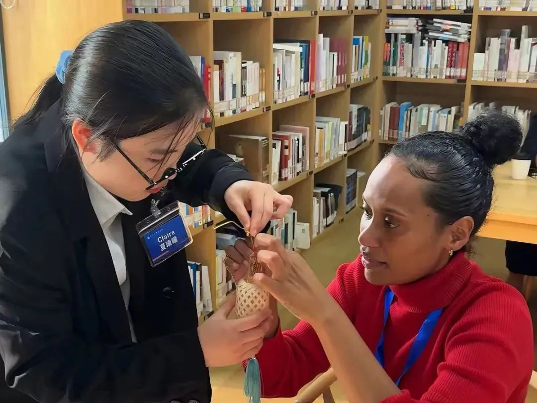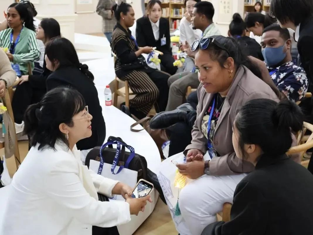 柴改英对远道而来的外交官员们表示热烈欢迎,她介绍了浙外作为浙江省国际人文交流基地与50多个国家和地区的150多所高校保持友好往来的背景。她表示,随着“一带一路”倡议的稳步推进,我国与太平洋岛国的互动与合作日益紧密,文化交流成为双方深入交往的基石。她认为高校既是友谊的受益者,也该成为交流和发展的参与者与助推者,浙外与太平洋岛国之间的交流与友谊,不仅是一段跨越山海的旅程,更是一场互利共赢、共同发展的同向奔赴,期待双方携手并进,共同开创中国与太平洋岛国文化交流的新篇章。