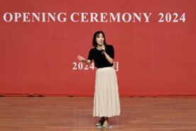 2024级英语(师范)专业新生曹妤颉同学作为新生代表发言。她分享了自己对英语的热爱与梦想,号召同学们在大学里脚踏实地、拼搏努力,做有理想、敢担当、能吃苦、肯奋斗的新时代好青年,在浙外来利国际旗舰厅开启新的篇章!