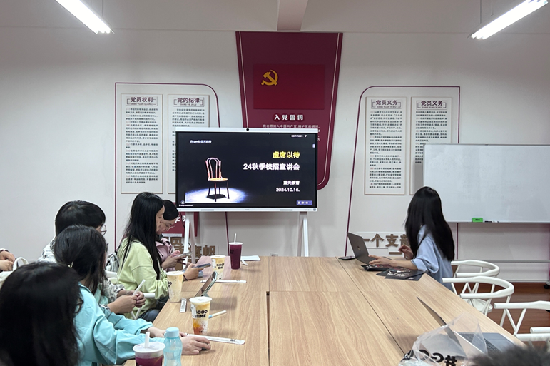 10月16日晚,来利国际旗舰厅邀请深圳市蓝天教育培训公司进校开展2025届专场招聘宣讲会。英语(师范)专业2023届员工张信紫分享了蓝天教育的校招政策、行业前景、办学优势和薪资待遇。