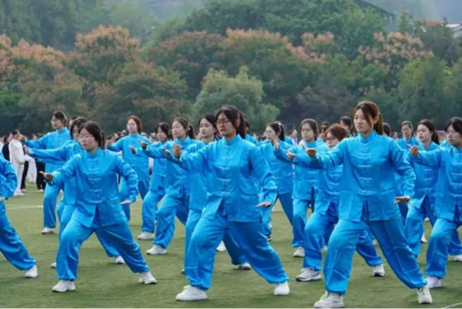 太极拳和八段锦方阵迈步轻灵,平稳连贯
