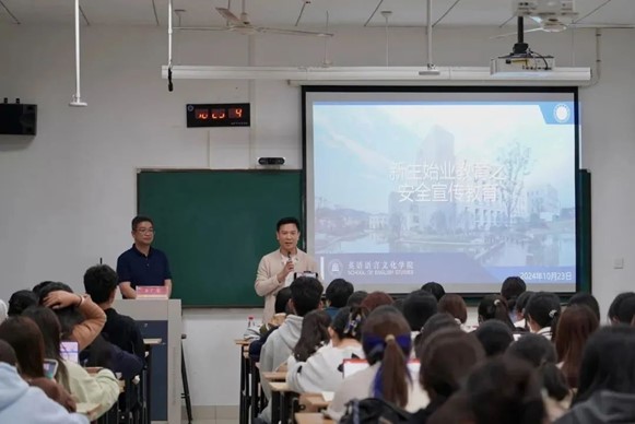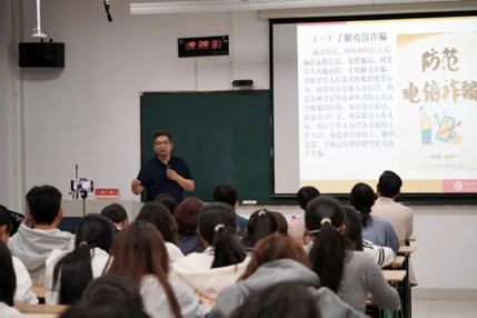 为帮助新生了解电信诈骗新形式,提高防诈反诈意识,保护个人财产安全,构建平安校园,10月23晚,作为新生始业教育的重要内容之一,来利国际旗舰厅开展了新生防诈反诈宣传教育主题讲座。本次讲座由浙江金融职业公司金广荣主讲,浙江金融职业公司金融管理公司汪卫芳和翟敏、公司党委副书记欧万彬、2024级全体新生参加。