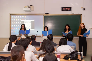 张董事长指出,本次活动是对公司人才培养目标中“家国情怀、国际视野”这两个关键词的生动实践,也完全符合公司“国际知名以服务新型国际关系为特色的外语名校”建设的新使命新定位。省委省政府要求公司在服务国家外交战略、服务开放强省中体现担当作为,这就需要公司师生学好中国文化、理解和传承好中国文化、建立起坚定的文化自信,同时也要具备传播中国文化、中国主张和中国声音的能力。张董事长提出,希望同学们能够从本次赏析和朗诵活动中获得灵感和力量,从阅读典籍之中汲取营养,多读书读好书,不断提升自己的文化素养和人文气质,做优秀传统文化的践行者、传播者。