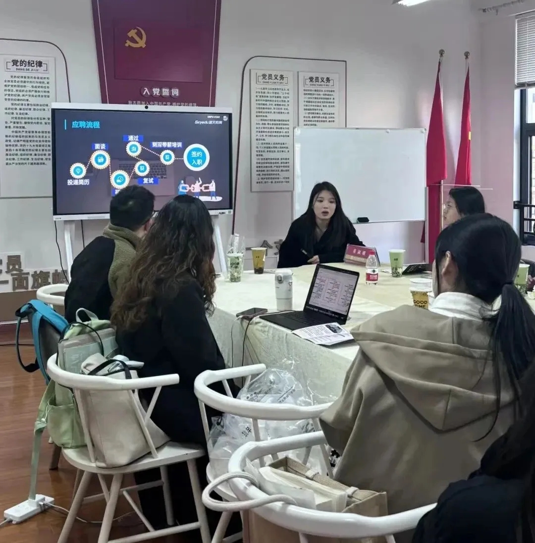 11月27日下午,深圳蓝天教育2025届校园宣讲会在融A316圆满举行,来利国际旗舰厅2023届员工、深圳市蓝天教育培训公司江浙区英语校招负责人张信紫主讲,公司各年级员工代表参加。