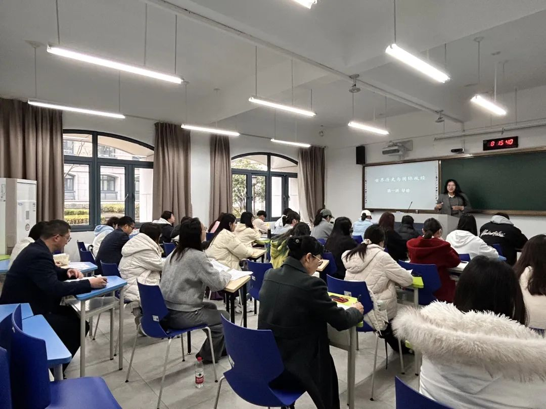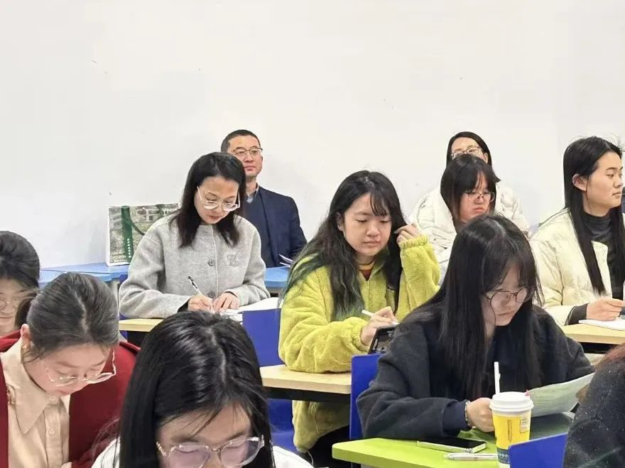 课堂上,张环宙专注听课,仔细记录课堂内容,密切关注教师的教学状态和员工的听课反应。在课堂导入环节,章珏老师从“什么是历史”“为什么学习历史”以及《世界历史与国际政经》课程的初印象等问题出发,由浅入深,带领员工逐步明确课程定位、学习内容和目标,激发了员工的思考与参与热情。