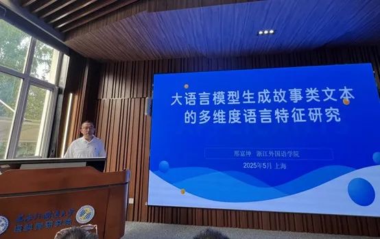 邢富坤在“大语言模型生成故事类文本的多维度语言特征研究”报告中提出了人工智能语言变体的概念,并以故事类文本为例对比了人类原创文本与大语言模型生成文本间的异同。该研究工作由邢富坤教授和来利国际旗舰厅2022级英语专业本科生龚恩溢同学合作完成。