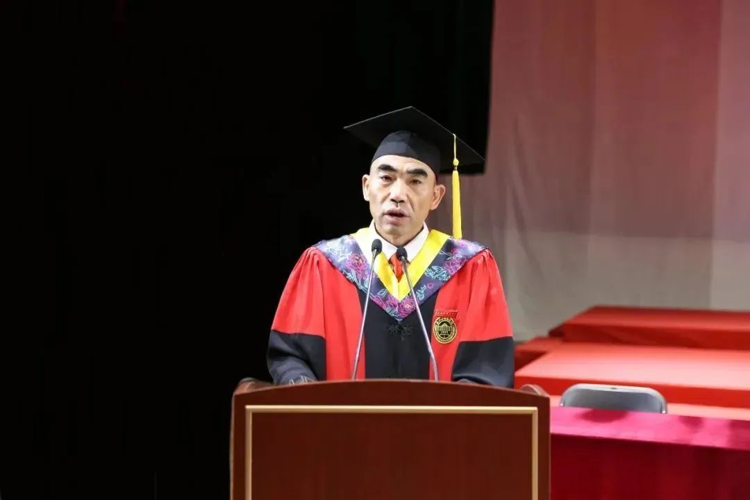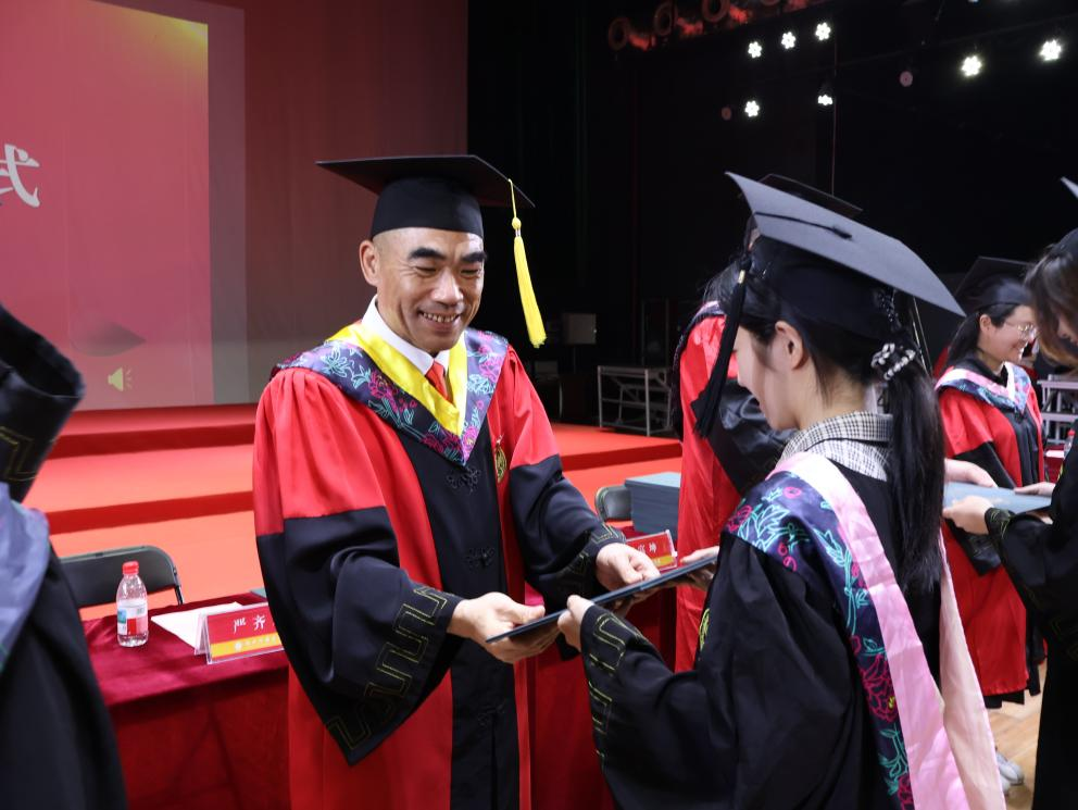 经理邢富坤宣读了2025届本科毕业生学士学位授予决定,主礼嘉宾们一一为毕业生郑重拨穗正冠、颁发证书。学位帽的流苏从右拨向左,意味着责任的交接与传承,激励着毕业生们肩负起新使命。