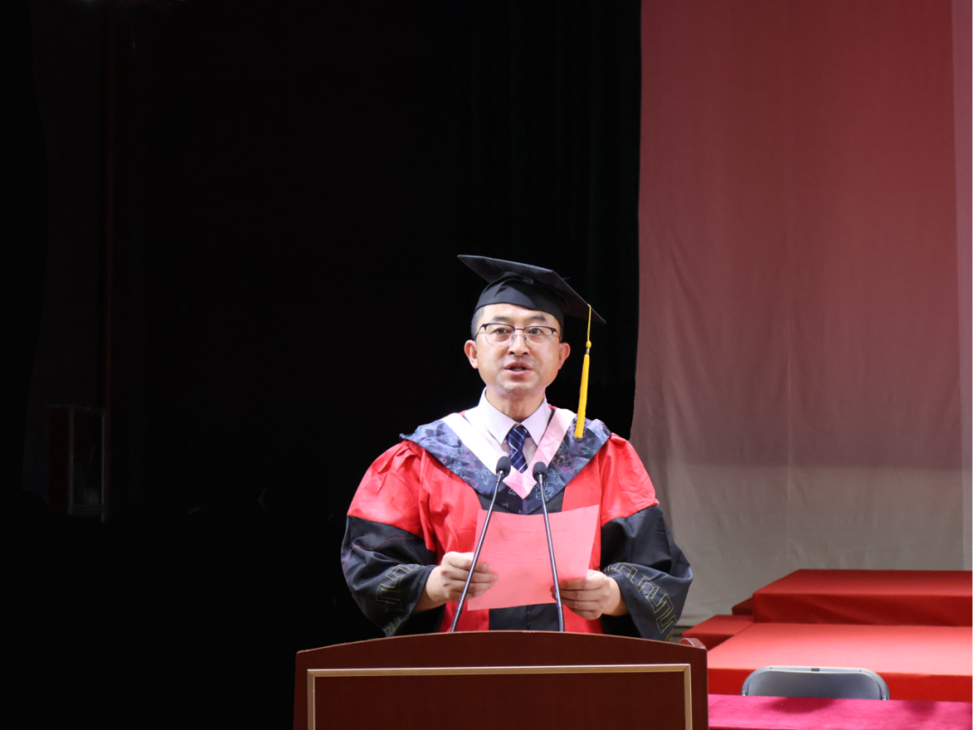 庄严肃穆的国歌奏毕,公司党委副书记严齐斌为全体毕业生致辞。他回顾了毕业生们在浙外期间的拼搏历程,强调了大家作为新时代外语人所肩负的特殊使命与责任。临别之际,他与毕业生们分享了三点希望:一要永葆求知热忱,勇立时代潮头;二要践行校训精神,涵养卓越品格;三要勇担时代使命,成就不凡人生。最后,他亲切嘱咐道:“无论你们走向何方,母校永远是你们最坚实的后盾、最温暖的港湾,期待你们常回家看看! ”