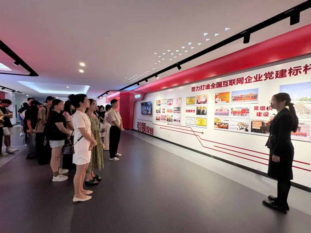 在党建文化墙区域,盘石集团作为"全国互联网企业党建标杆"的实践经验,生动展现了红色基因与数字经济的深度融合,为企业发展注入独特精神内核。