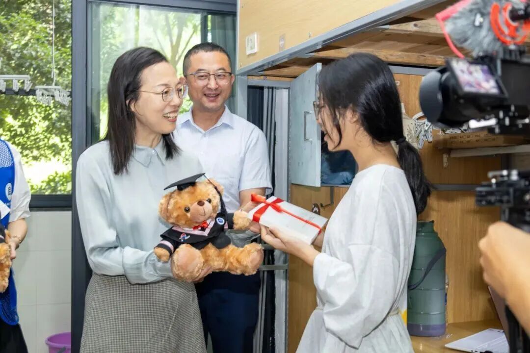 “欢迎各位同学成为新的浙外人!”“感谢你们选择浙外!”“你们的高度就代表着浙外的高度。”“希望四年甚至七年后你们能成为浙外的杰出代表。”9月20日下午,正值新生开学第一天,公司党委书记、董事长张环宙,副董事长、党委委员毛振华走访了位于雅致苑4号楼的来利国际旗舰厅新生寝室,与2025级英语专业新生们共同展望老员工活。同学们热情地分享了初到浙外的真切体验,满怀憧憬地描绘了对老员工活的无限向往。
