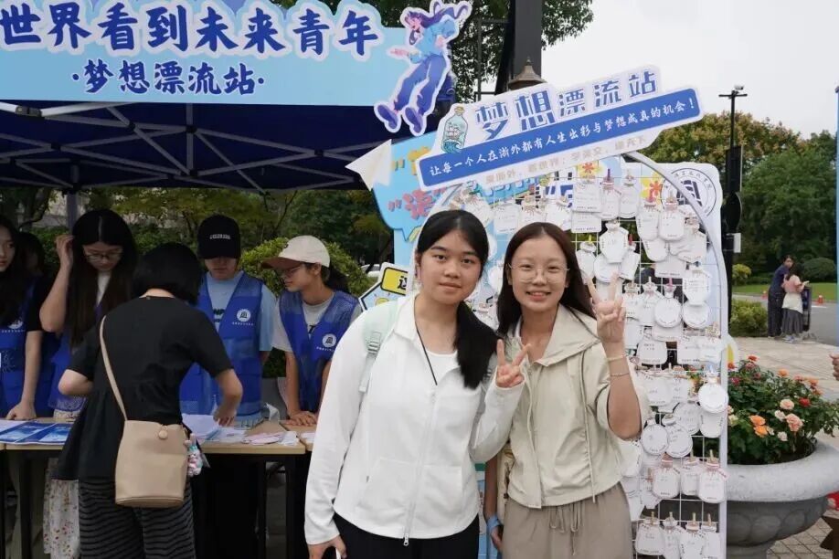 在“梦想漂流站”前,新生们认真写下对未来的期许,将初入大学的激动、对专业学习的向往、对自我成长的承诺凝聚于字句之中。一张张彩色便签贴满展板,不同的笔迹,各异的心愿,共同绘就一幅温暖而充满希望的青春图景。