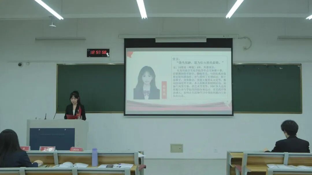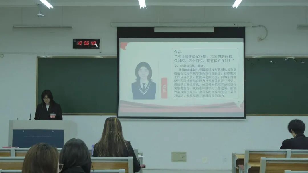 在第二次全体会议上,代表们认真听取并审议通过了《委员选举办法(草案)》《大会监票人》《计票人名单(草案)》。委员候选人发表竞选,代表行使选举权力。查晓月、陈语琪、戚怡、江南、蒋依涵、刘姝涵、王佳楼、王欣琴、王奕诺、徐点点、应明杰、邹天宇、张紫悦13人当选新一届学委委员。