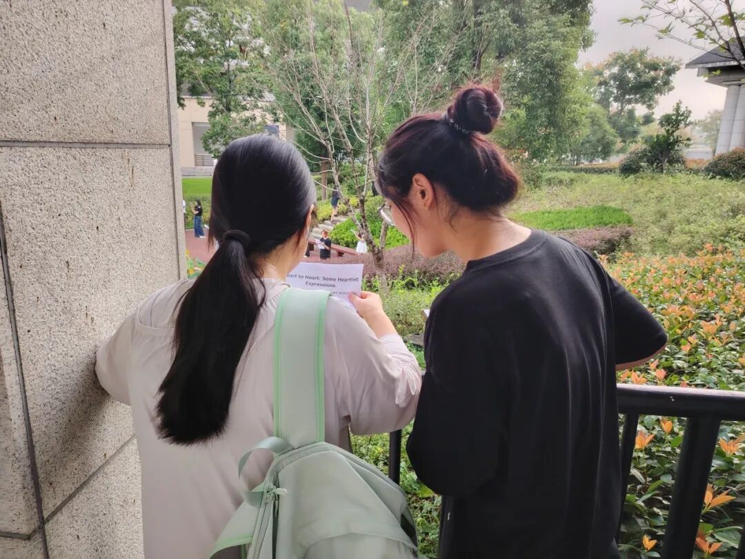“户外晨读”还引入“教师指导+朋辈陪练”制,由专业课老师发布晨读材料,并在现场进行语音语调的指导,鼓励大家充分利用好晨读的机会锻炼口语。高年级的同学与新同学“一对一”结对,现场示范连读、重音、语调。2023级英语师范专业的崔渊杰已经连续两年担任晨读助教:“晨跑后微凉的风里,捧起专业资料重温旧知,我既为自己能瞬间捕捉到学弟学妹的语音偏差而心生自豪,也为引导他们把单词读得愈发标准而满溢暖意。”在员工时代以“助教”的身份发光发热,让她的每个清晨的努力都有了鲜活的意义,“这也为我的青春添注了踏实而温暖的分量。”