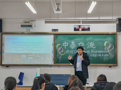 在介绍诗纳卡琳威洛大学时,Dr. Boonsawasd着重分享了该校的办学特色和学科优势。作为泰国顶尖的国立综合大学,诗纳卡琳威洛大学注重将语言能力与专业领域相结合,培养具有全球视野的实践型人才。