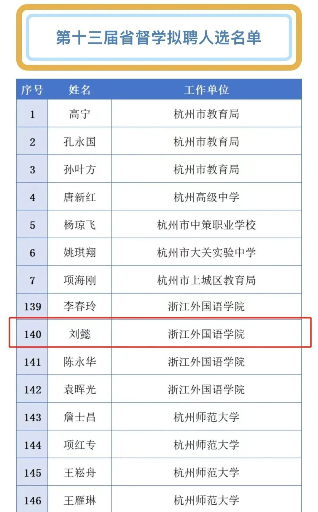 外语教育系科研主管刘懿教授受聘为浙江省第十三届省督学