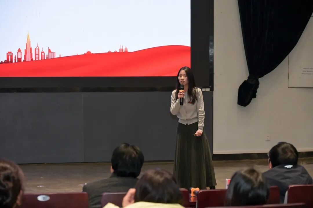 洪妤婷老师以《教育的初心在传承中绽放光芒》为题,结合校庆征文集中三位教育者的故事,从“实干笃行、匠心传承、勇挑重担”三个维度,诠释了教育者的坚守与担当,并号召新一代浙外人在榜样引领下接续奋斗。其演讲情感真挚,荣获一等奖。