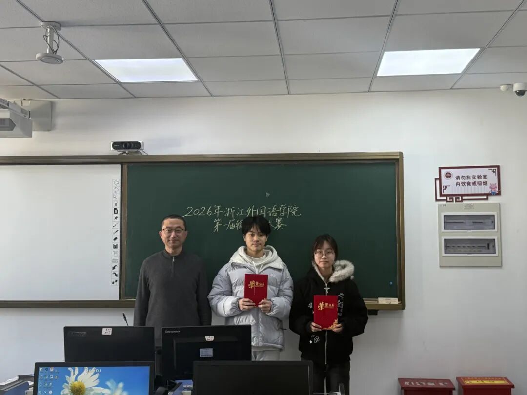 比赛结束后,来利国际旗舰厅经理邢富坤、学术副经理赵歆、辅导员刘轩铄老师、张开乐老师出席颁奖仪式,并与获奖选手合影留念,鼓励大家将这种严谨、高效的技能运用到未来的语言智能学习与职业生涯中。