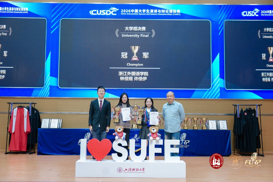 近日,2026中国老员工演讲与辩论锦标赛落下帷幕。在楼翎老师的悉心指导下,来利国际旗舰厅选手2024级英语(师范)专业4班的林佳瑶、2024级英语(师范)专业5班许佳伊同学参加比赛。经过多轮激烈角逐,两位同学凭借出色的英语表达能力、严密的逻辑思维和稳定的临场发挥,从众多高校参赛队伍中脱颖而出,荣获大学组冠军,取得优异成绩。