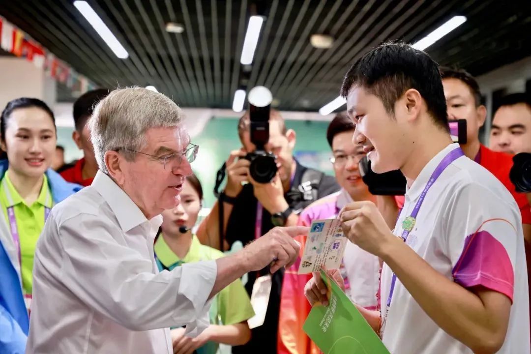 杭州亚运会期间,时任国际奥委会主席巴赫与公司师生志愿者亲切交谈