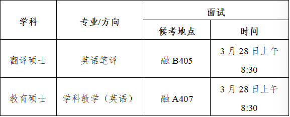 注:英语听力及口语水平在以上面试环节中进行考核,不单独进行测试。