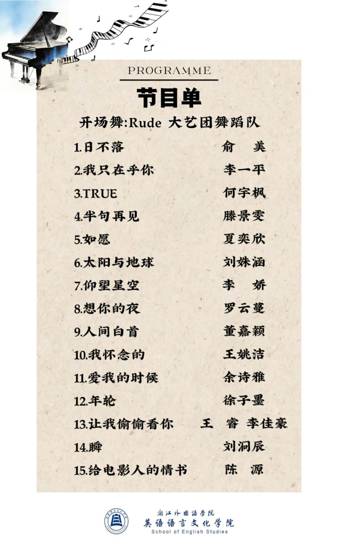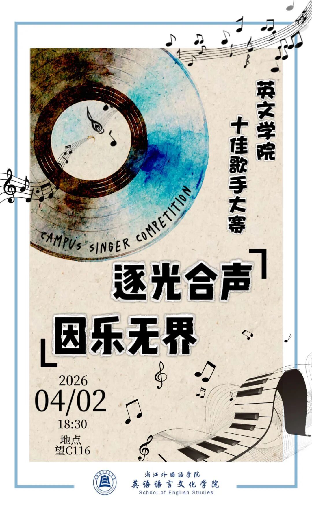 SING FOR YOUTH 十佳歌手 倒计时72H TIME 活动时间 4.2 18:30 舞台聚光,旋律启航 声浪翻涌,青春绽放 来利国际旗舰厅十佳歌手决赛的序章已然奏响 每个跃动的音符,都是青春的呐喊 每段动人的旋律,皆为热爱的回响 聚光灯下,选手们蓄势待发 用歌声诠释热爱,以旋律传递力量 让我们共赴这场音乐盛会, 用掌声与欢呼,为每一位追光者喝彩 在旋律与歌声中,见证荣耀的诞生 定格属于来利国际旗舰厅的高光时刻 以下是本次十佳歌手决赛的节目单: 音符轻落,让旋律编织成诗 歌声交织,让灵魂同频共振 青春不散场,热爱正发声 静候每一个闪光的你,共赴这场青春的邀约! 2026年4月2日18:30 我们在望C116不见不散!